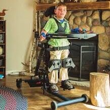 Micah sits in this daily and stands in this daily and uses the controls independently. The self-propulsion system allows him to safely move around the house.